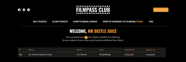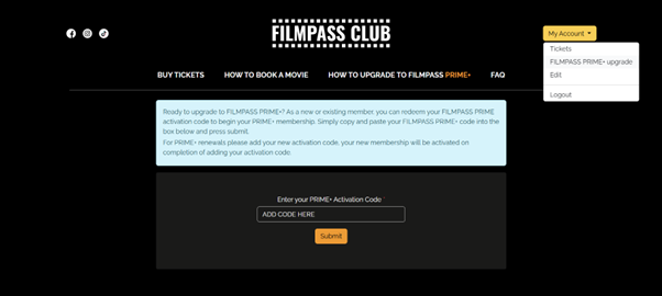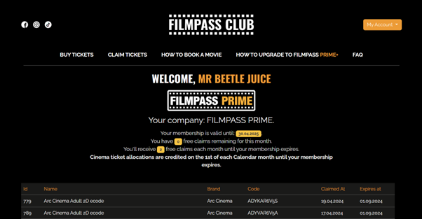Once a member activates their PRIME+ membership, the FILMPASS website automatically credits their account every month, ensuring a seamless way for them to claim their monthly cinema ticket allocations.